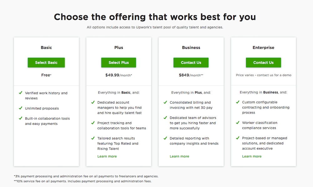 For freelancers the fees can add up. To bid on gigs you will need ‘connects’, the amount varies with the type of job — long term or high price contracts cost more. A connect is $0.15 for a basic member, but if you upgrade your membership to freelancer plus, you get 70 connects a month included, as well as some other features.